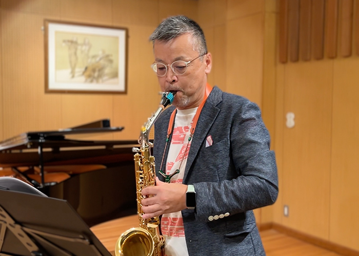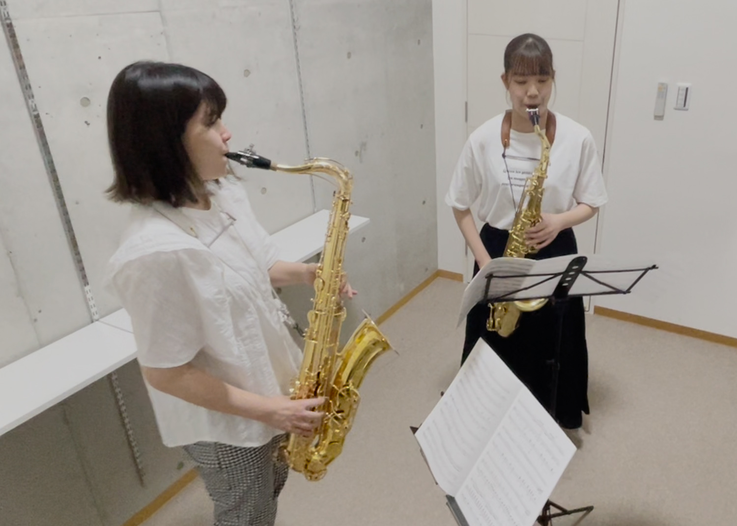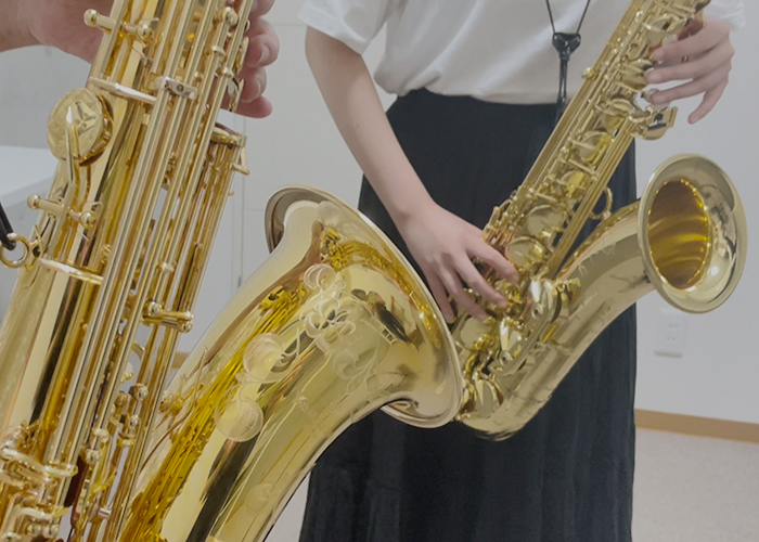 音楽教室spaceのサクソフォン教室では、小学生〜大人の方まで幅広い年齢層の方が受講されています。小学校でのアウトリーチ公演や、吹奏楽部コーチ、知育リトミック講師などの講師自身の経験を活かし、やさしく分かりやすい順序と言葉で、音楽を指導することを心がけています。 楽器を持って初めのうちは、吹き方(口の形)、息の吸い方・吐き方、姿勢の3つを大切にレッスンしていきます。特に小さなお子様や、小学生・中学生には、音楽が大好きになってもらうことを目標に、音あてクイズや、講師とのアンサンブルを積極的に取り入れ「音楽あそび」の時間も織り交ぜながら楽しく進めていきます。
